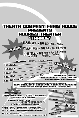 ●INFOMATION 090-5397-6886(劇団) 前売り:¥1800 当日:¥2000 チケット予約はこちらからどうぞ! |
